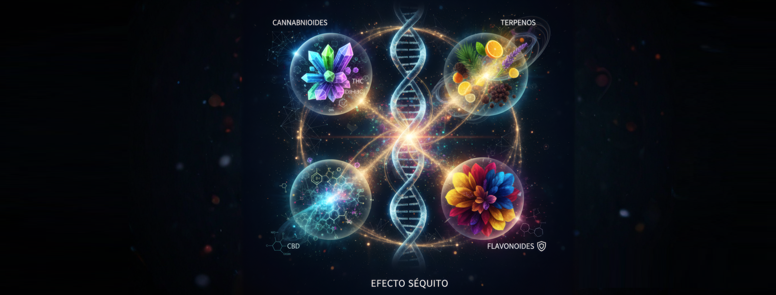 Uno de los conceptos más fascinantes y debatidos en la ciencia del cannabis es el denominado “efecto séquito” o “entourage effect”. Esta teoría, propuesta inicialmente por los investigadores Raphael Mechoulam y Shimon Ben-Shabat, sugiere que los cannabinoides, terpenos y flavonoides trabajan de manera sinérgica, produciendo efectos terapéuticos superiores a los que generaría cualquier compuesto aislado [8].